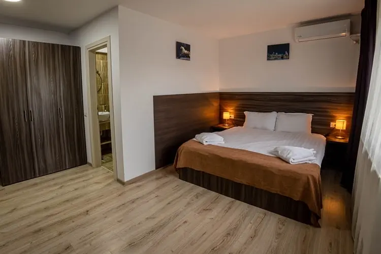 Spatioasa si confortabila, caldă în timpul iernii și racoroasa în zilele de vară, dotată cu un pat dublu, dulap incapator, biroul și fotoliul la care puteți lucra în liniște. Aceasta camera cu o suprafata de 23 metri pătrați și o capacitate de maxim doua persoane, are baie privată cu duș și este decorată în stil modern, punandu-va la dispoziție următoarele facilități: pat dublu doua persoane(160/200 cm),TV. cu ecran plat, aer condiționat, minifrigider, acces gratuit wifi, fierbator electric, cafea,ceai, articole de baie (prosoape, papuci, gel de dus).